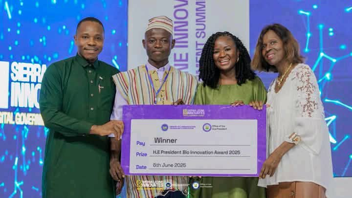 Mohamed Samu secured the grand prize and received the prestigious H.E. President Bio Innovation Award 2025, taking home $30,000 for his eco-focused initiative, Insect-Based Organic Fertilizer. His project utilizes black soldier flies to transform organic waste into high-protein animal feed and fertilizer a sustainable, circular economy model with the potential to enhance agricultural productivity and reduce waste.