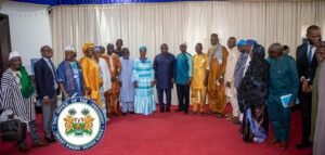 President Julius Maada Bio officially took charge of the Ferensola Organisation, a prominent Kuranko cultural group, during a high-profile meeting at State House on Tuesday. The leadership of the group, including Paramount Chiefs from Koinadugu, Falaba, and Tonkolili districts, entrusted the President with reviving the organisation and pledged their full support for his government’s national development agenda.