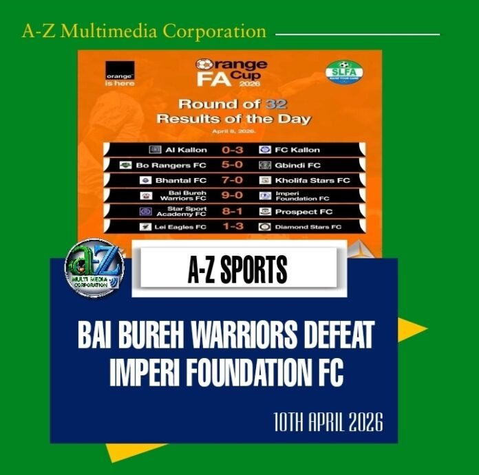 – Bai Bureh Warriors FC 9 – 0 Imperi Foundation FC