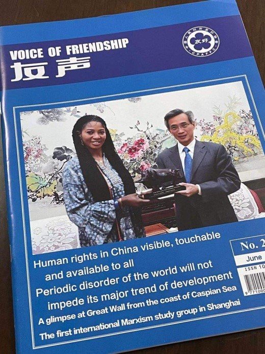 One of the biggest Chinese Magazines, Voice of Friendship in celebration of the Communist Party of China (CPC) 100 years anniversary has featured Sierra Leonean philanthropist, artist and cultural Ambassador to China and Africa, Mariatu Kargbo popularly known as Maria the Black Pearl of China and the President of the Chinese People’s Association for Friendship with Foreign Countries President Lin Songtian in their front page.