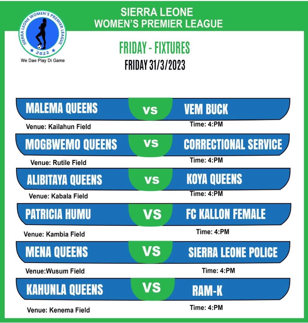 In Makeni at Wusum field, Mena Queens FC will clash with Sierra Leone Police FC which sits in the third position the host side is hoping to shock the in-form visitors to potentially finish in the seventh position.