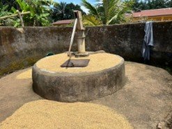 Spoilt Jacky pump in Saoria now used for drying rice and clothes.