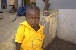 Two children play quietly in front of their house in Saoria.