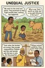 An elder from Makoth highlights the systemic imbalance: “Even when herders are wrong, they find ways to escape responsibility. Farmers receive less than they ask for, but if a cow is maimed, the farmer pays full price. Children see this and wonder why fairness favors the powerful.”