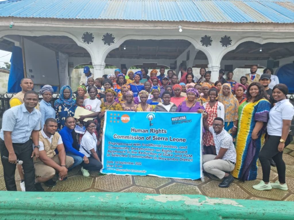 In a bid to get them to understand and also build their capacity from a right-based approach in reducing or eradicating incidences of sexual and gender base violence and female genital mutilation, the Human Rights Commission of Sierra Leone (HRCSL) on 1st September 2022, engaged some fifty (50) religious and traditional leaders. These include Soweis in Moyamba District at the NP Hall, Yoyema with support from United Nations Population Fund (UNFPA) through Restless Development