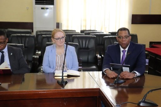 Incoming Resident Representative of the International Monetary Fund (IMF), Wayne Mitchell, together with outgoing Monique Newiak, held an interactive session with management of the Ministry of Finance on Thursday, 16th February 2023, to acquit himself with the different departments of the ministry, what they do and how they can work together when he eventually takes over office.