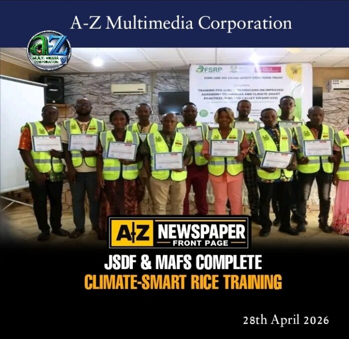 The Japanese Social Development Fund (JSDF), in collaboration with the Ministry of Agriculture and Food Security (MAFS), has concluded a two-week intensive training programme on climate-smart and improved agronomic practices for 12 rice technicians. The training was conducted under the Sierra Leone Rice Systems Capacity Strengthening Project.