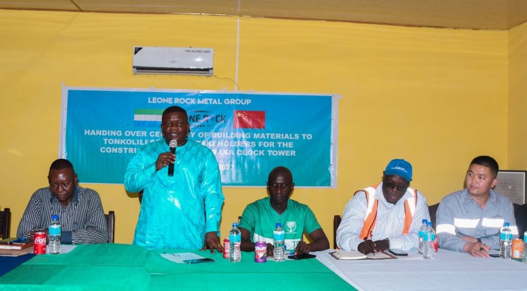 In what has been described as an unprecedented developmental leap, Leone Rock Metal Group, has handed over building materials to Tonkoklili District Stakeholders in an effort to heed to H.E President, Julius Maada Bio’s developmental strides in facilitating the construction of a New Modern Clock Tower in the Tonkolili District Head Quarter town of Magburaka Northern Province in Sierra Leone.