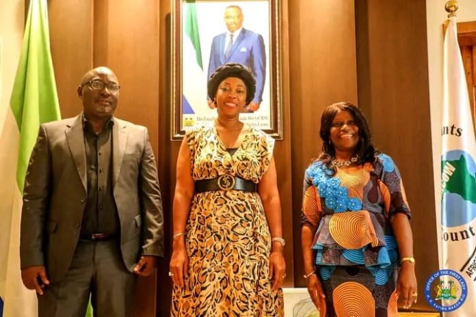 The New Secretary General of the Mano River Union (MRU) Ambassador Maria G. Harrison has paid a courtesy call on the First Lady of the Republic of Sierra Leone, Her Excellency Dr. Fatima Maada Bio at her Office in Freetown.