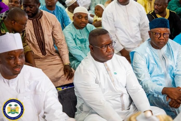 His Excellency President Dr Julius Maada Bio has joined Muslim worshippers in Sierra Leone, with his tolerance and peace messages, to observe Eid-Ul-Fitr Prayers at the Jamatul Ilmu-Zikr Mosque at Hill Station, marking the end of the holy month of Ramadan.