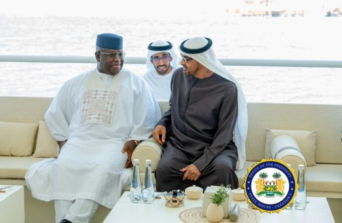 Sierra Leone’s President, Julius Maada Bio, engaged in a pivotal discussion with the President of the United Arab Emirates, His Highness Sheikh Mohamed bin Zayed Al Nahyan, on Wednesday, March 6th, 2024, in Abu Dhabi. The meeting, following a recent investment visit to China, underscored a commitment to fortifying ties and exploring avenues for enhanced investment, particularly in economic and trade sectors.