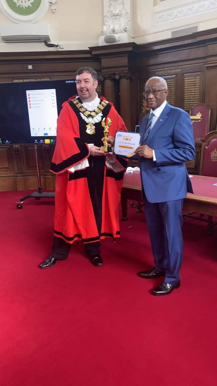 The Sierra Leone Ambassador to the UK Dr. Morie Komba Manyeh is said to have received the award on behalf of President Bio.