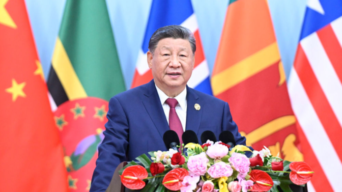Chinese president Xi Jinping delivers a keynote speech at the Global Leaders’ Meeting on Women held in Beijing, China, October 13, 2025.