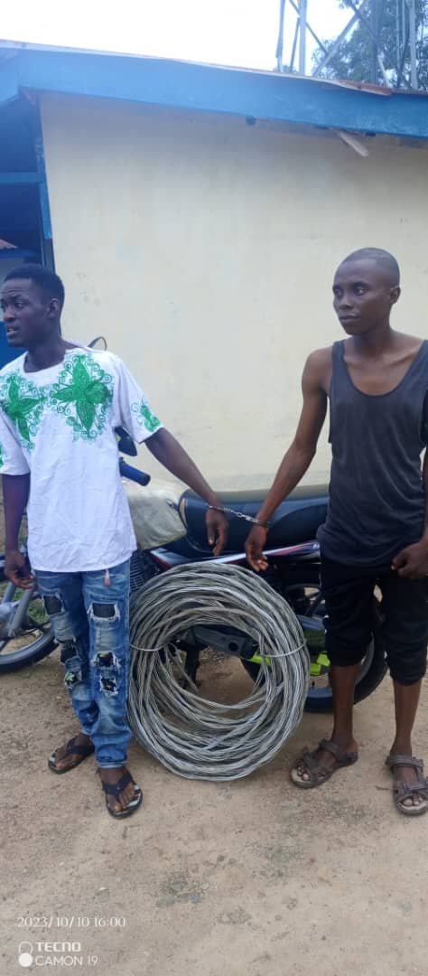 Investigations have unveiled that the stolen copper and aluminum cables from various locations in Bo have raised concerns over security due to the heightened demand for these materials. The suspects, Kantay Bangalie and Junior Moriba, have implicated another individual, Tikeh, who is currently evading capture. Allegedly, they all conspired with him to commit cable theft, utilizing a commercial motorbike with registration number AUY 788 for their illicit activities.