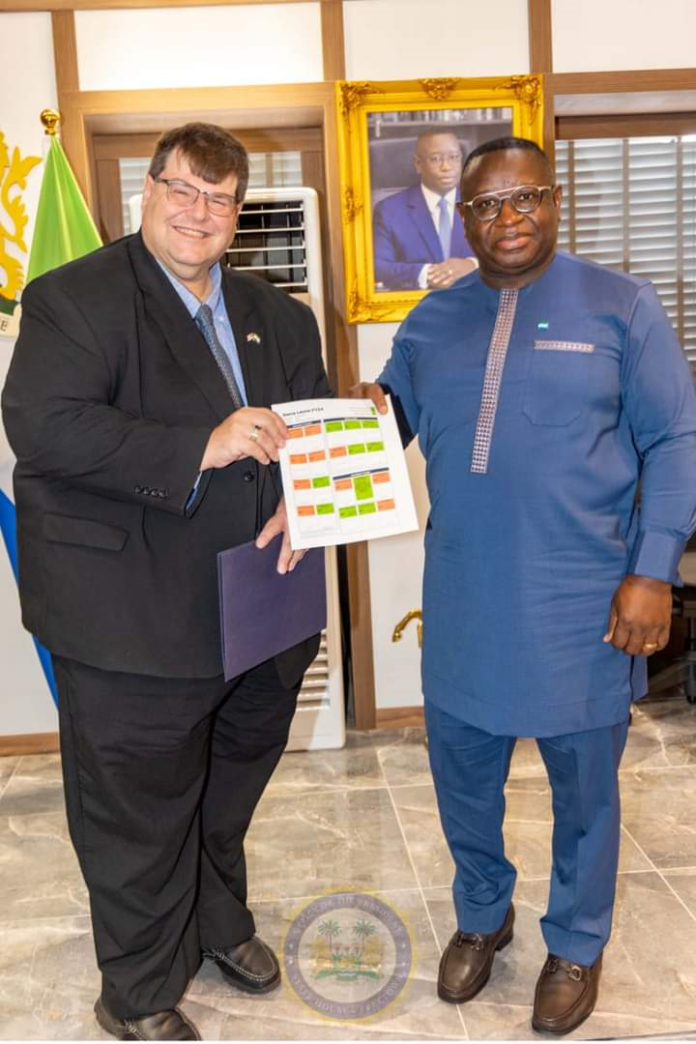 Scoring impressively in 10 out of 20 indicators in the 2024 Millennium Challenge Corporation (MCC), the United States Ambassador to Sierra Leone Bryan Hunts has on Monday 6th November 2023 at the handing over of the scorecard to His Excellency Presdent Julius Madda Bio expressed that Sierra Leone did well and might be selected again for the MCC Compact.