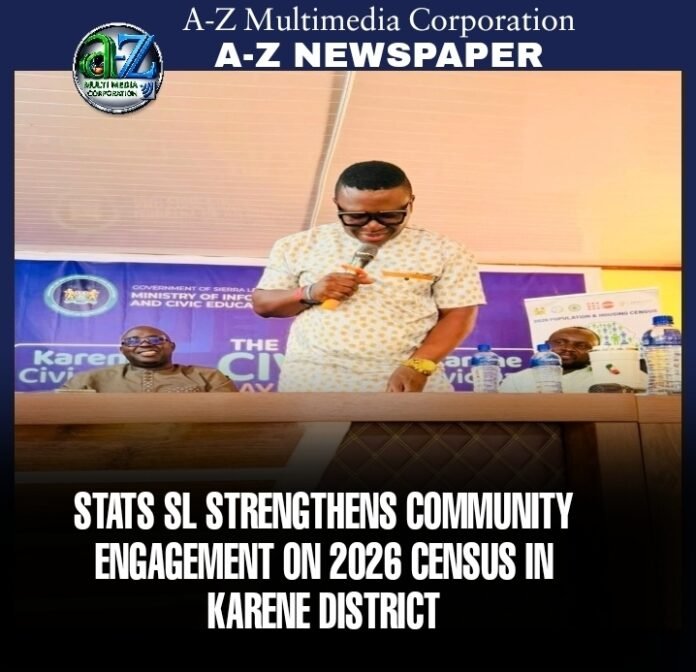In a significant step toward promoting an inclusive and people-centered national census, Statistics Sierra Leone (Stats SL) has intensified its public engagement through a Civic Town Hall Meeting held at the Karene District Council Hall on 14 April 2026.