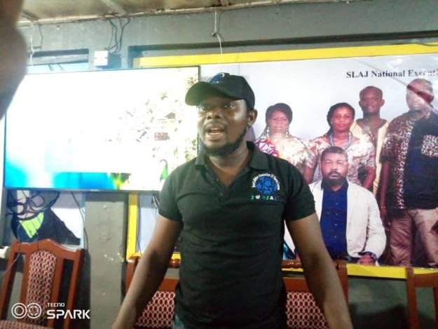 Sahr Morris Junior- the —President of SWASAL addressing Journalists before the Training