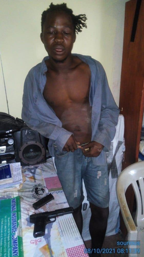 In the early hours of Friday 08/10/2021, a dutiful and committed Police Officer, Pc 12909 Kpakiwa Aiah presently attached to Octea Mining Company arrested one Charles Songu Briwa in possession of a pistol but without ammunition.