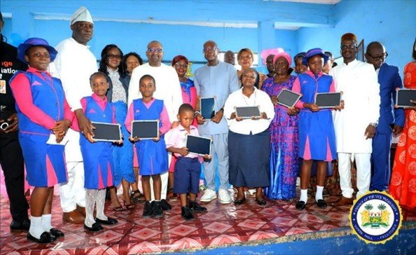 Sierra Leone’s Vice President, Dr. Mohamed Juldeh Jalloh, on Tuesday, November 11, 2025, donated digital school kits to Modern Elementary School and St. Joseph’s Primary School in Freetown. The initiative, implemented in partnership with the Orange Foundation, aims to support the government’s Free Quality Education agenda and enhance digital learning in early childhood education.